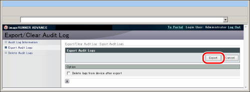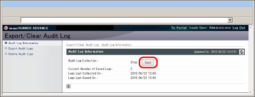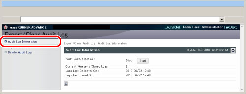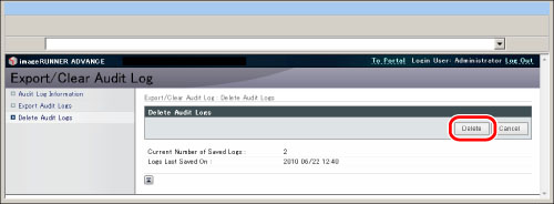 In order to manage logs, it is necessary to log in to the Remote UI as an administrator.