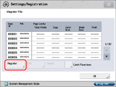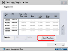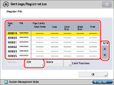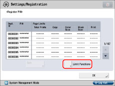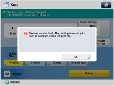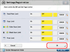 .You can set the page limit from 0 to 999,999 pages. Once a page limit is reached, copying, scanning, or printing is not possible.