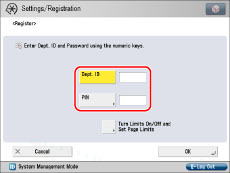 .If you do not set a PIN, you can use the machine by entering only the Department ID.