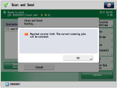 The machine stops scanning if the Scan Limit is reached while the machine is scanning originals that are being fed from the feeder. (Those originals that were scanned before the limit is reached are not added to the scan count.)