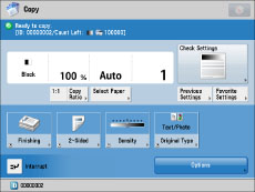 If you are managing the machine using control cards and there is a function with its limit set to 'Off' in [Limit Functions], the Main Menu screen appears when the machine starts. In this case, perform the procedure from step 1 without inserting a control card.