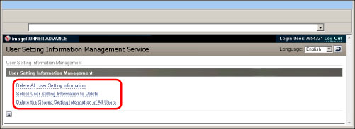You can also delete the shared setting information of all users, as well as specific user setting information.