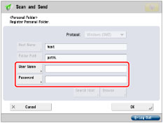 The information for the personal folder obtained from the login service is displayed in [Host Name] and [Folder Path].