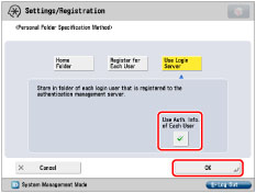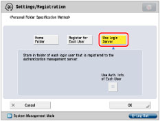 In this procedure, select [Use Login Server] to specify the personal folder.