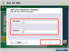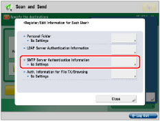 Uses the information for SMTP server authentication set in the machine. (See "Common Communication Settings for E-Mail/I-Fax.") Further settings are not required for every user.