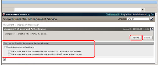 For information whether the login service or other services you are using support Integrated Authentication, contact your local authorized Canon dealer.