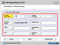 After pressing [Generate Key], you cannot use any of the keys until a key pair has been generated and registered.