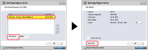 To check the certificate authority, press [Serial No. List].