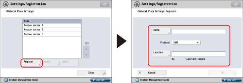 Press [Network Place Settings] → set the Network Place.
