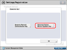 If user signature is disabled, it is not necessary to press [Key and Certificate List for This Device]. If you press [Key and Certificate List], the screen changes to the Key and Certificate List screen.