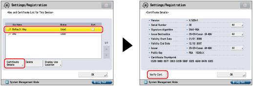 Select "Device Signature Key" → press [Certificate Details] → [Verify Cert.].
