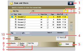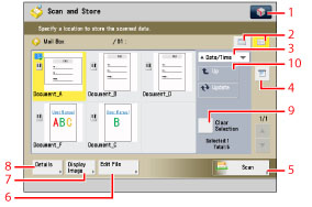 Press to cancel all settings. (The machine restores the default settings for Scan and Store.)