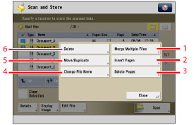 Press to move or duplicate files to another mail box. |