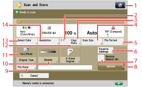 Press to cancel all settings. (The machine restores the default settings for Scan and Store.)