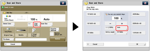 Press [Copy Ratio] → [Auto].