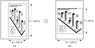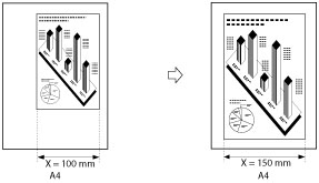 The machine converts the specified sizes into a zoom ratio (%) using the following formula. The result is rounded to the closest integer.