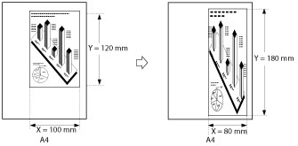 If you set the zoom ratio in the XY Ratio mode, the image of the original may be rotated before being printed. The machine calculates whether or not to do this based on the original size and the specified zoom ratio.