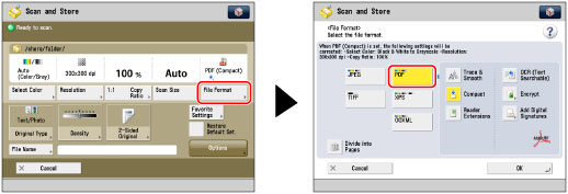 This mode is only available for storing files in the Advanced Space, the Advanced Space of another imageRUNNER ADVANCE machine on the network, or memory media.