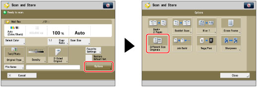 If you set the Scan Size setting to anything other than [Auto], all of the originals are scanned in the specified size. If you want to scan each original in its original size, make sure to set the Scan Size to [Auto].