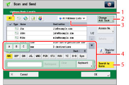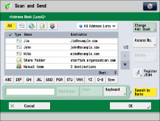 Press [Search by Name] again to close the screen for refining the address book and return to the previous screen.