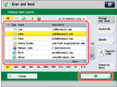 (numeric keys). If you press [Addresses without Access Number], the destinations that are not managed with an access number are displayed.|