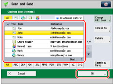 You can also browse destinations registered in the one-touch buttons of a server machine from a client machine on the network. (See "Specifying Destinations Using the One-Touch Buttons.")