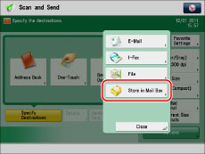 Documents that are scanned using a specified scan size (Custom, Long Original, or Free Size), cannot be stored in a mail box.