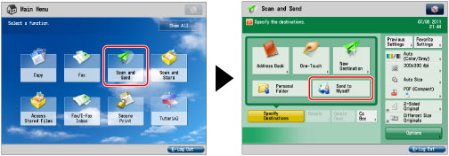[Send to Myself] appears only if you register a user's e-mail address when you are using authentication by SSO-H.