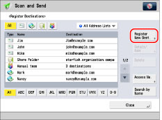 For instructions on searching for registered destinations, see "Address Book Screen."