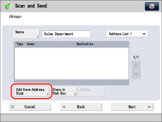 If you want to store a group address, you can only select destinations registered in the same Address List.