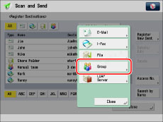 The Group Address feature enables you to create a group. You can register different types of destinations (such as e-mail, I-fax, file server, or mail box destinations) as a single group.