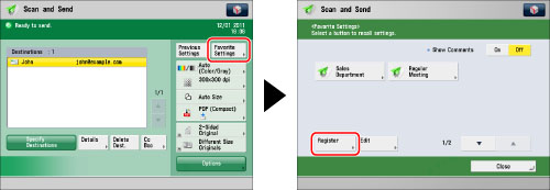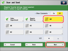 If you want to set password in the settings stored in the registered button, as you often import settings in a favorite button to another machine and you want to prevent users from pretending to be other users, exclude a password when registering.