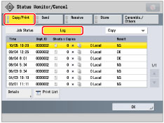 Prints the job log list. Press [Print List] → [Yes] to print the list.
