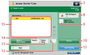 Press to specify your own e-mail address as the destination. Administrator can restrict destination e-mail address to the operator's address. (See "Setting Limited Destination for Sending E-Mail.")
