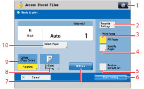 Press to cancel all settings. (The machine restores the default settings for Access Stored Files.) |