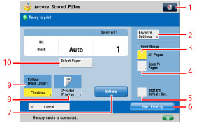 Press to cancel all settings. (The machine restores the default settings for Access Stored Files.) |