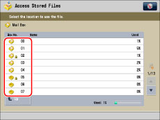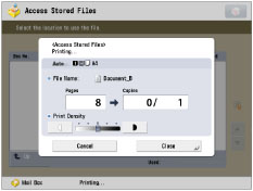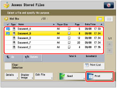 You can only select multiple files when the files are stored in the same mail box. To print multiple files stored in different mail boxes, you need to move the files to one mail box beforehand. (See "Moving/Duplicating a File.")
