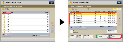 Select the desired Mail Box → select the desired file → press [Print].