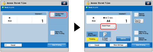 Press [Change Print Settings] → [Select Paper].