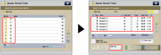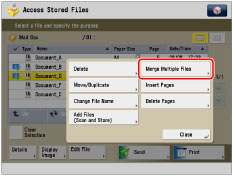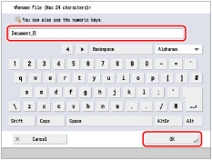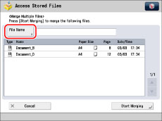If you create a file without assigning it a name, the machine automatically assigns the file a name using the year, month, day, and time the file was created. For example, if a merged file is created at 1:35 PM, 41 seconds, on 15.01.12, its name will be <20120115133541>.