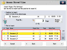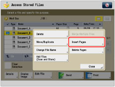 If you select multiple files and press [Insert Pages], the selected (highlighted) file becomes the file that is inserted.
