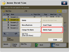 If you select multiple files and press [Delete Pages], the selected (highlighted) file becomes the file pages will be deleted from.