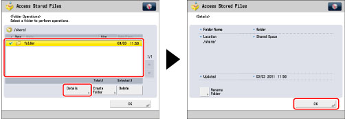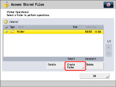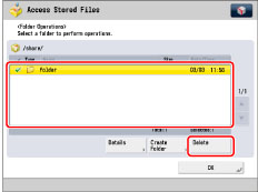 Select the desired storage space → select the desired folder level → press [Folder Operations].