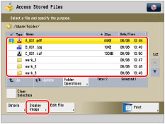 Select the desired file → press [Display Image].