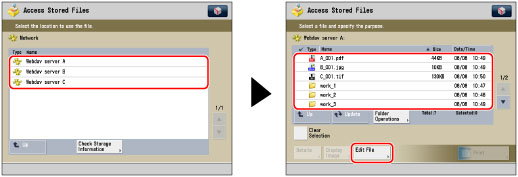 Select the desired storage location → select the directory where you want to store the file → press [Edit File].