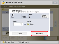 If the following screen is displayed, after the last batch of originals is scanned, press [Start Storing].