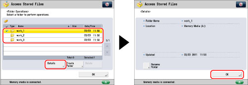 You can check the detailed information (folder name, location, date modified, etc.) for folders in memory media.
