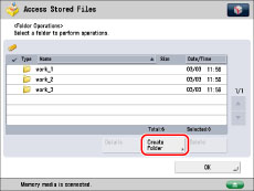 Select the desired memory media → select the desired folder level → press [Folder Operations].