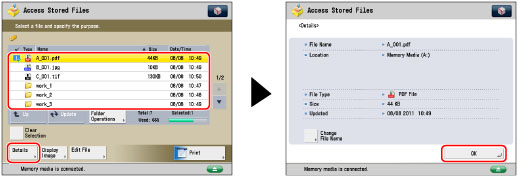 Select the desired file → press [Details] → [OK].