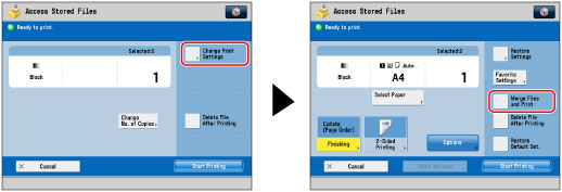 Press [Change Print Settings] → [Merge Files and Print].